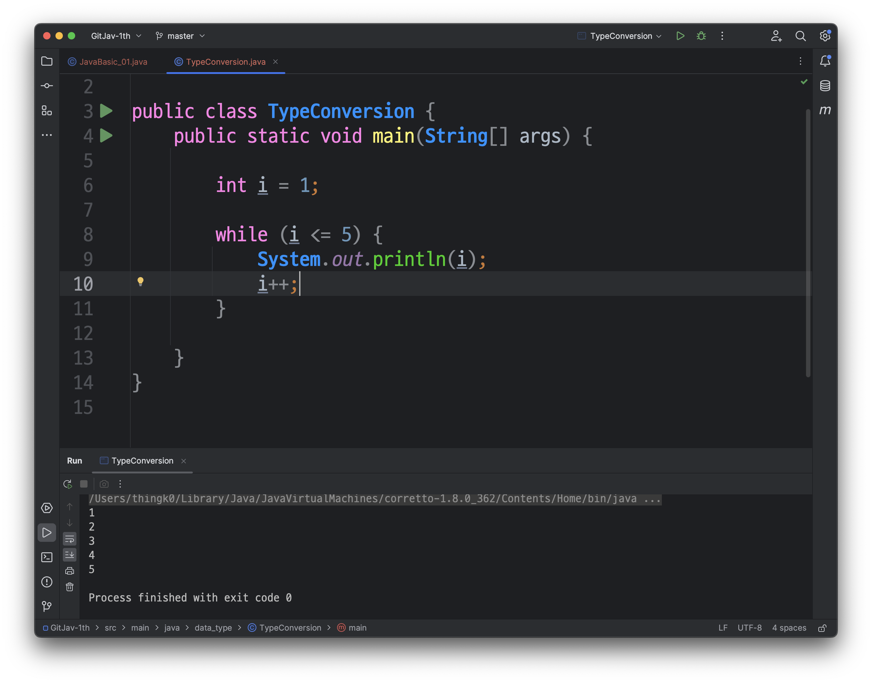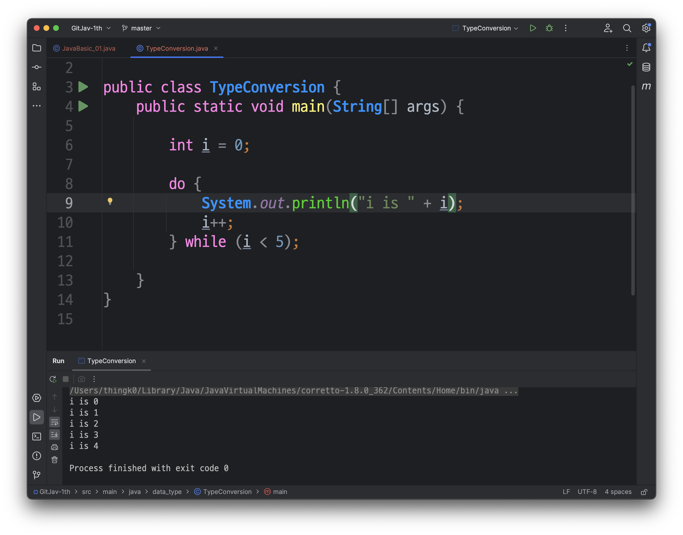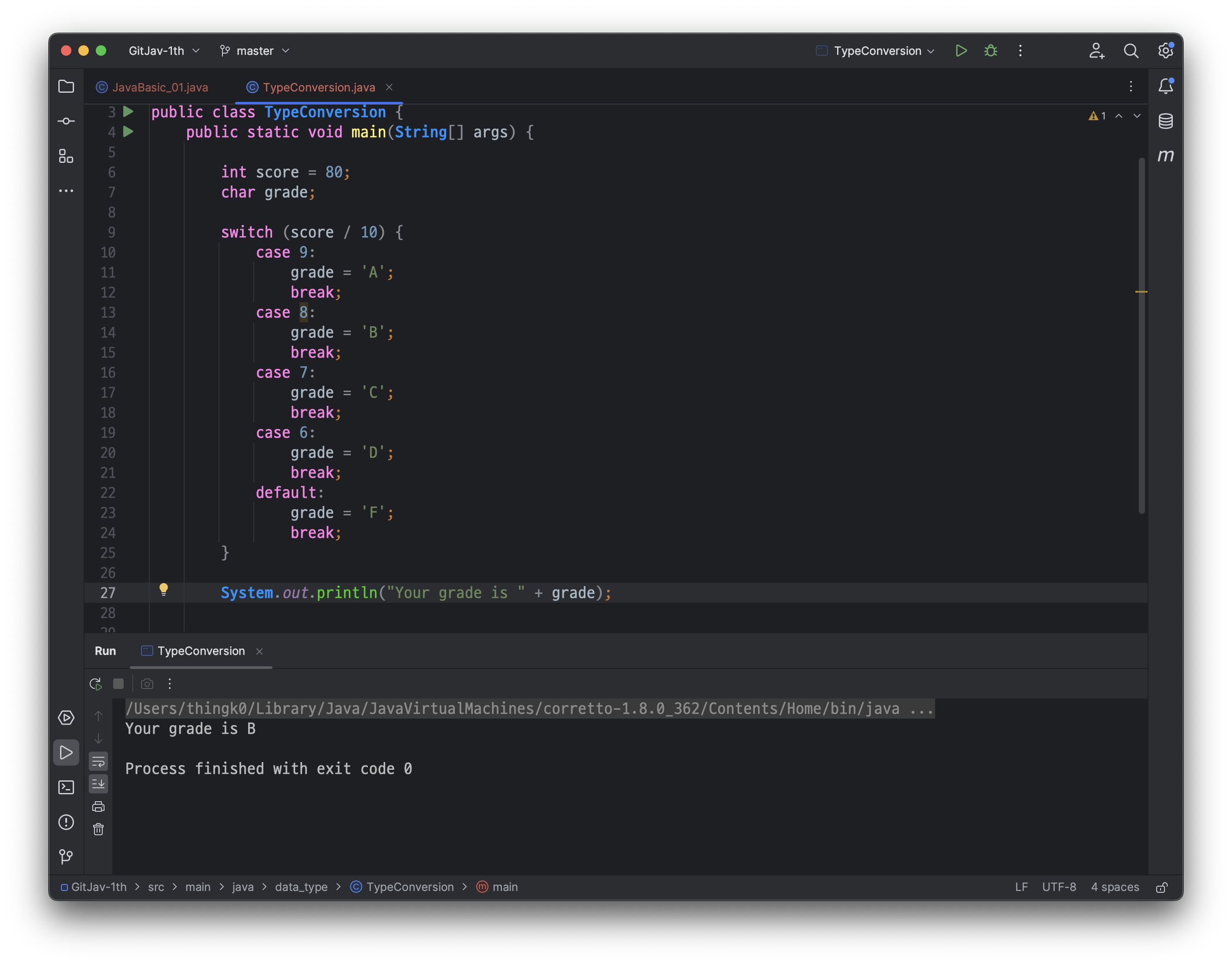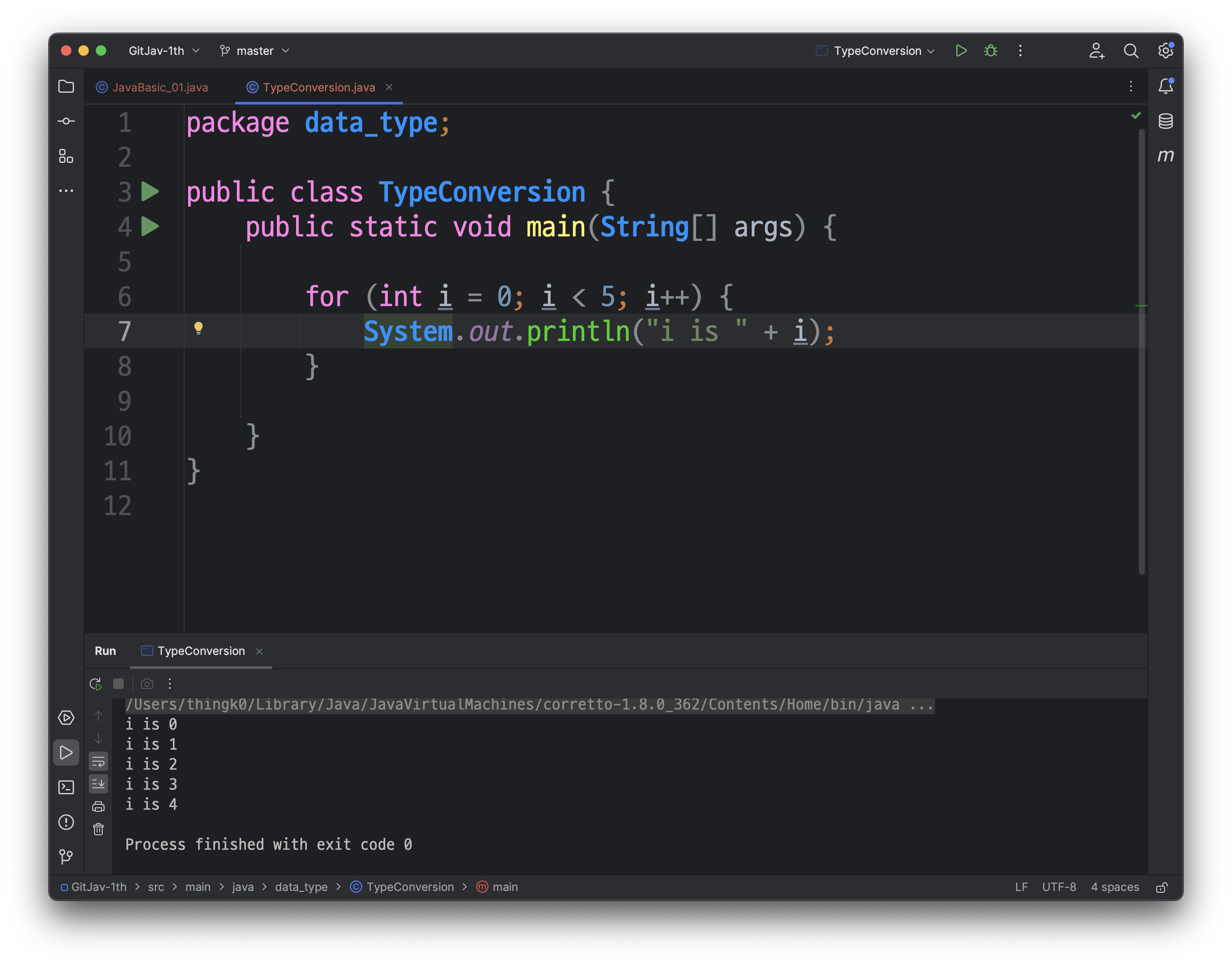 다음과 같이, src/main/java/JavaBasic_01 클래스가 생성된 것을 확인하실 수 있습니다.
