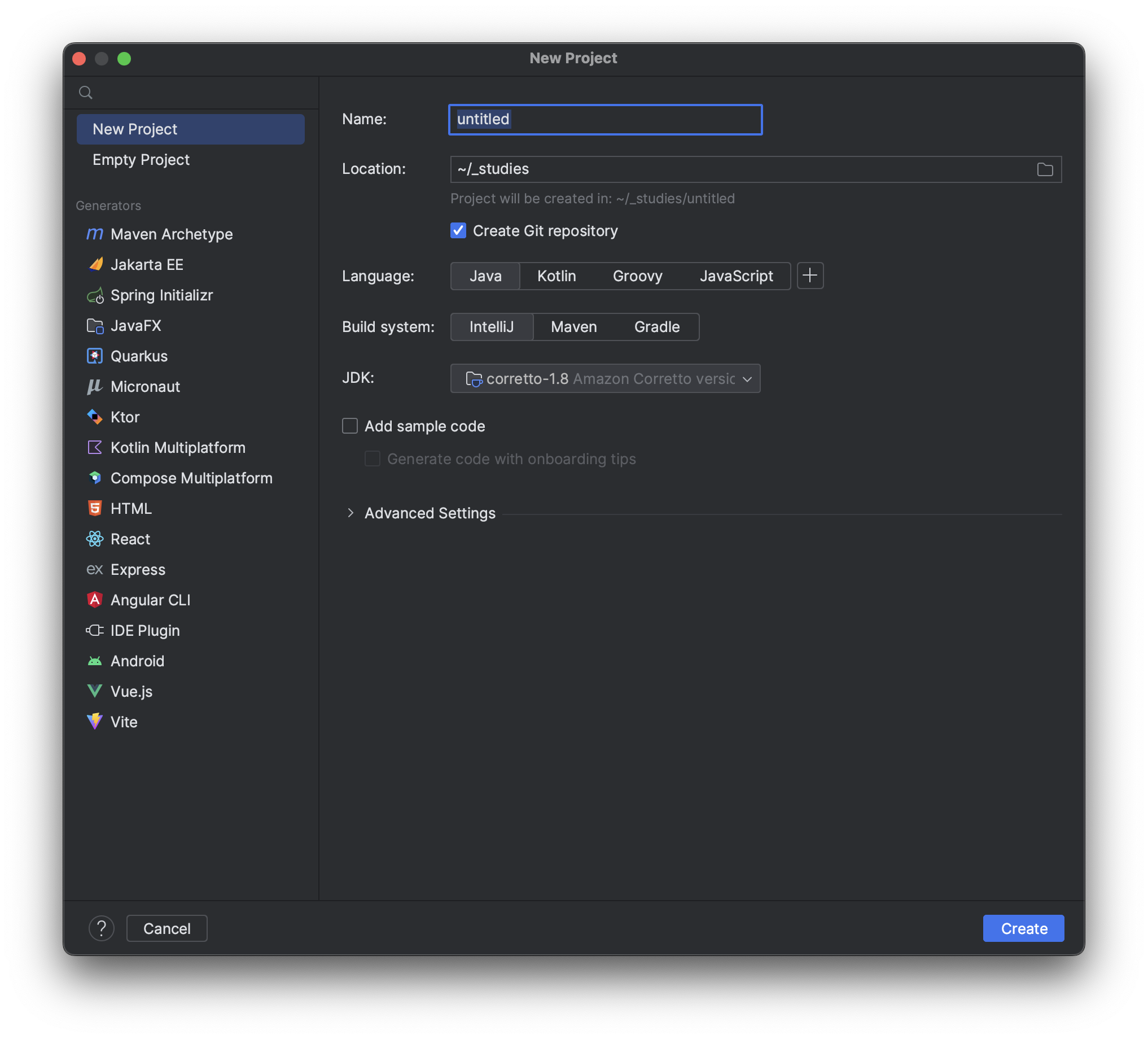 인텔리제이 - 자바 프로젝트 생성